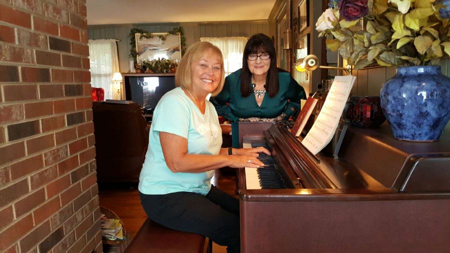 At the piano singing