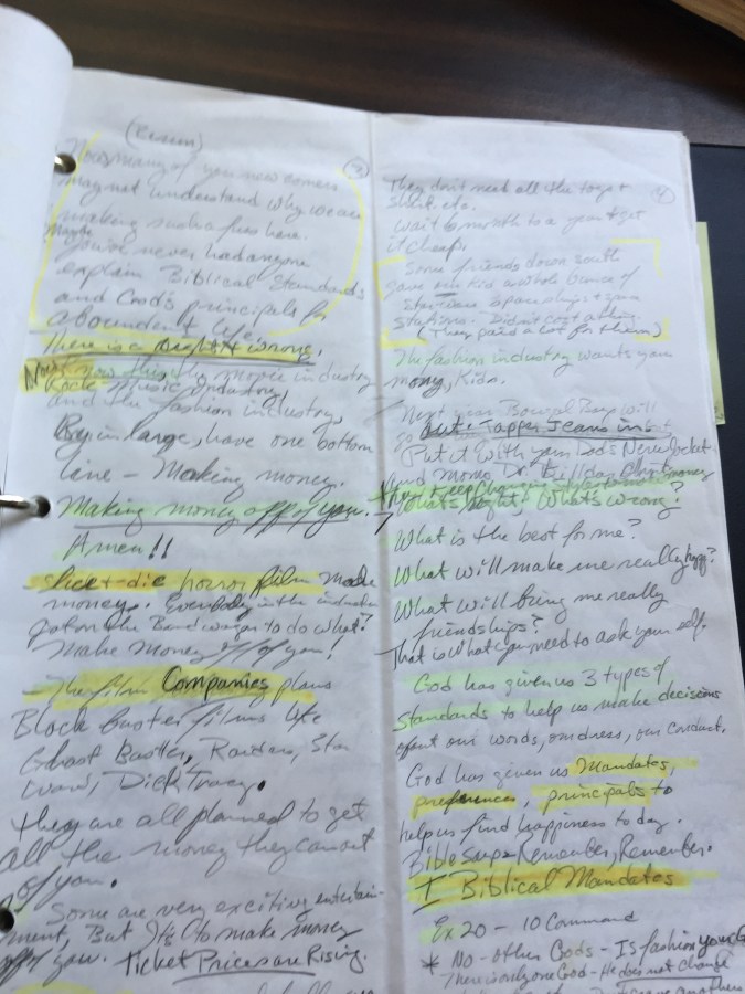 A hand-written sermon