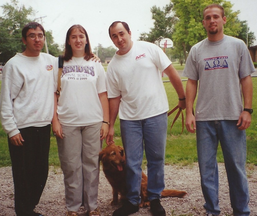 Our four kids with Brandy, the dog